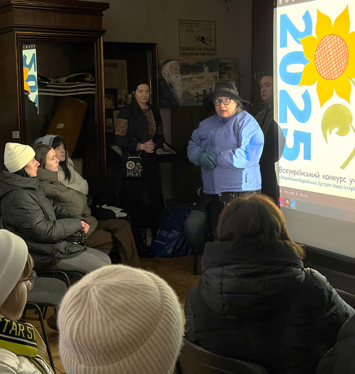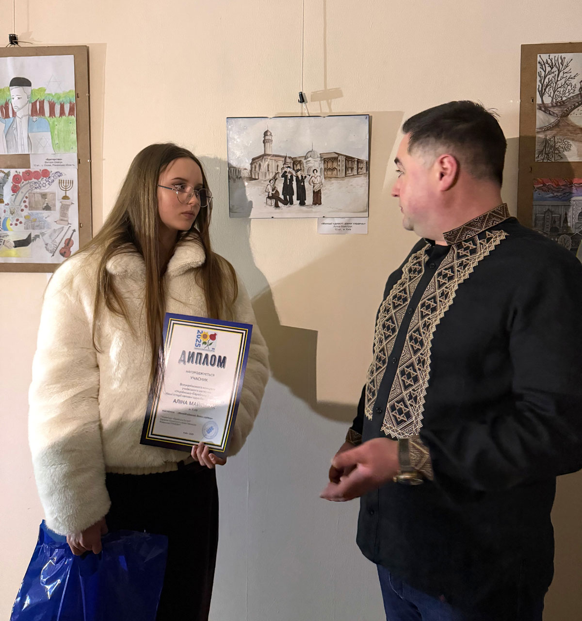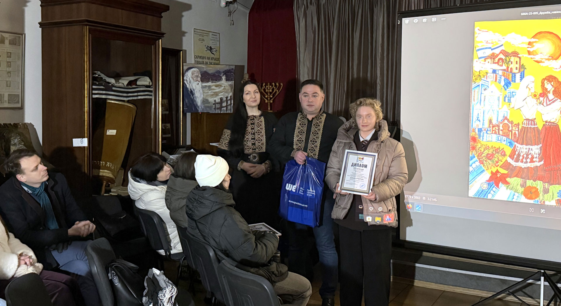 During the awards ceremony for the winners of the All-Ukrainian Student Drawing Competition "Ukrainian Jewish Encounter: Our stories are incomplete without each other — 2025." Sholem Aleichem Museum, 7 February 2026, Kyiv.