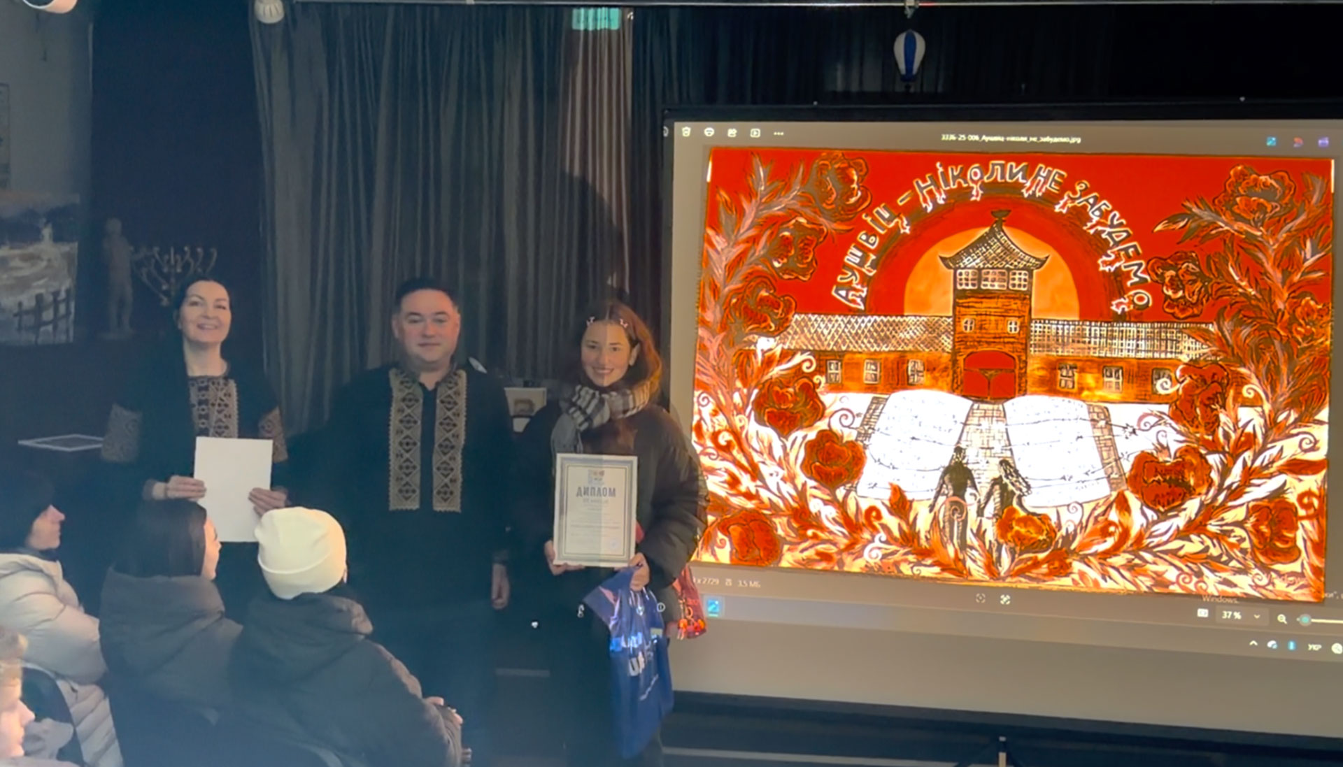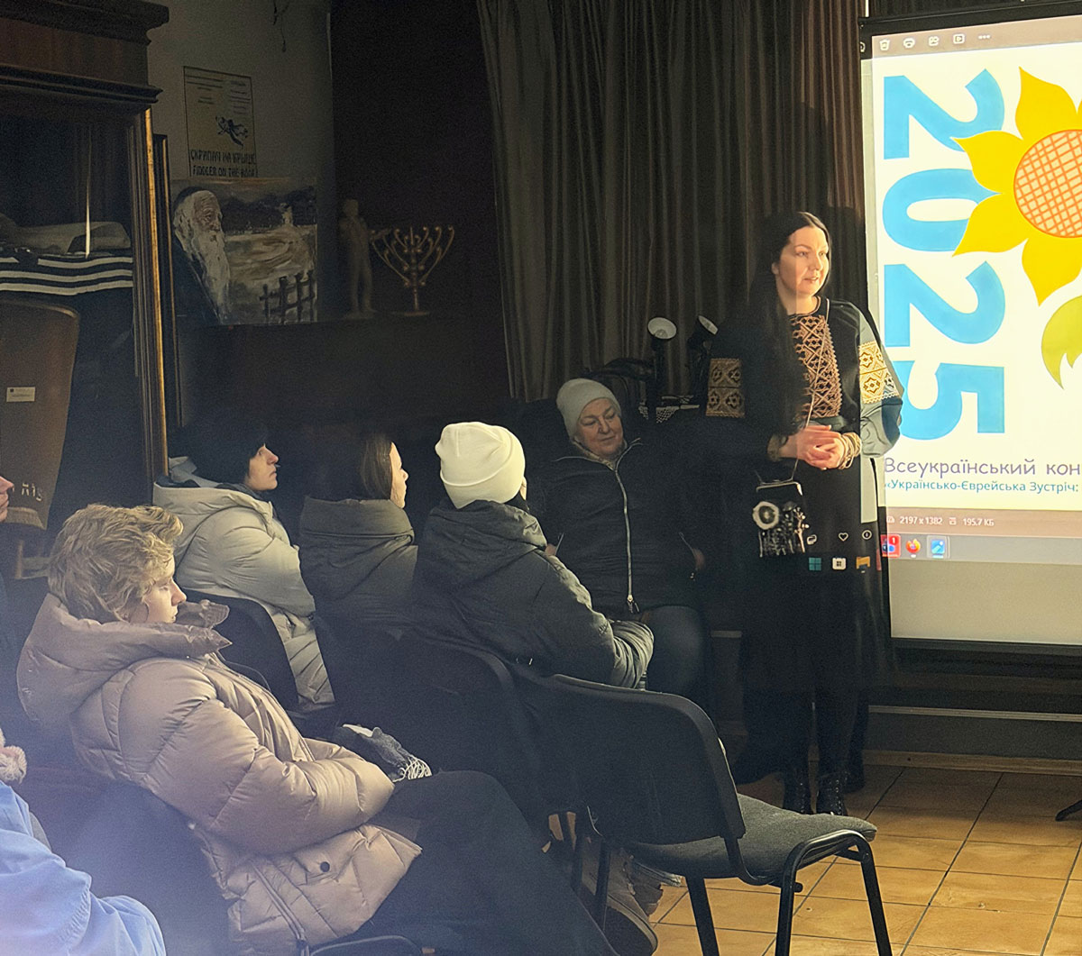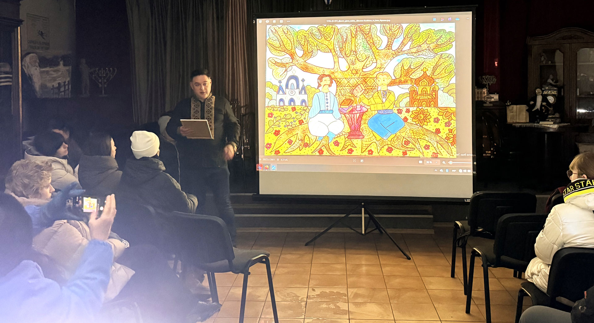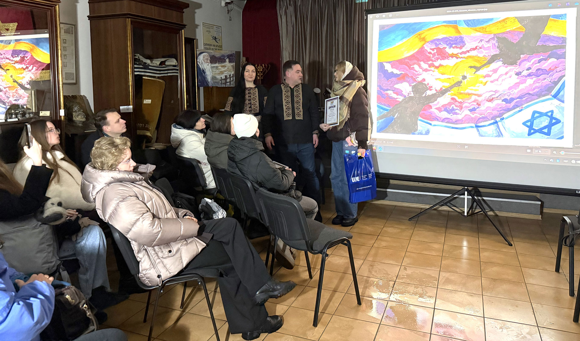 During the awards ceremony for the winners of the All-Ukrainian Student Drawing Competition "Ukrainian Jewish Encounter: Our stories are incomplete without each other — 2025." Sholem Aleichem Museum, 7 February 2026, Kyiv.
