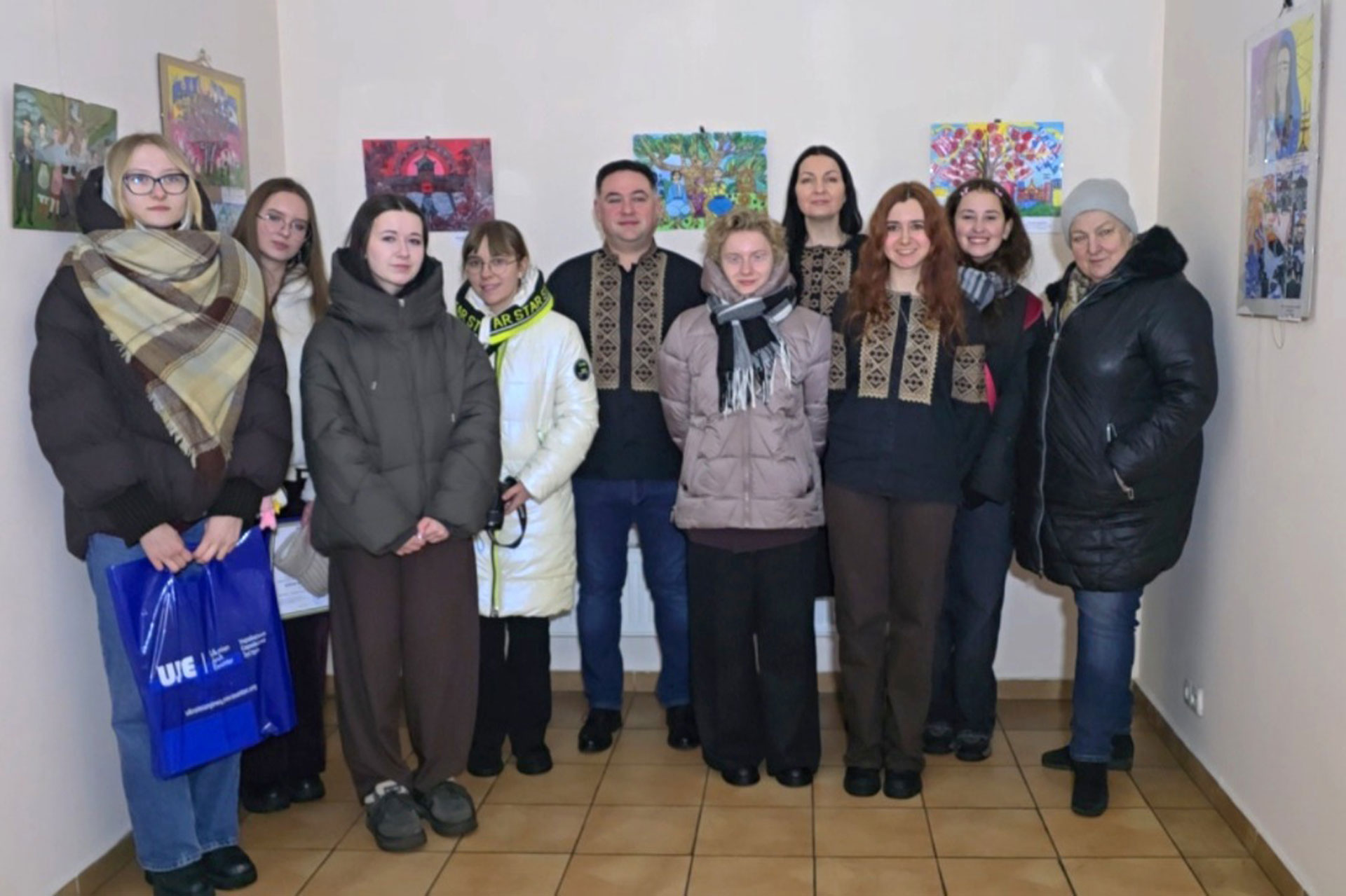 All-Ukrainian student's drawing competitionDuring the awards ceremony for the winners of the All-Ukrainian Student Drawing Competition "Ukrainian Jewish Encounter: Our stories are incomplete without each other — 2025". Left to right: Iryna Klymova, Director of the Sholem Aleichem Museum and head of the competition's jury; Olha Pukhkalo (Sumy); Oleksandra Radko (Zinkiv, Poltava region); Svitlana Hrynevych, the administrator of UJE's Office in Ukraine and curator of the competition; Varvara Medonchak, finalist and winner of the competition in 2023 and 2024; Vladyslav Hrynevych, Jr., UJE's regional manager in Ukraine; Diana Kucherchuk (Cherniakhiv village, Zhytomyr region); Oleksandra Kovtunovych (Zhytomyr); Anastasia Klopotovska (Zhytomyr); Natalia A. Fedushchak, UJE's Director of Communications. Sholem Aleichem Museum, 7 February 2026, Kyiv.