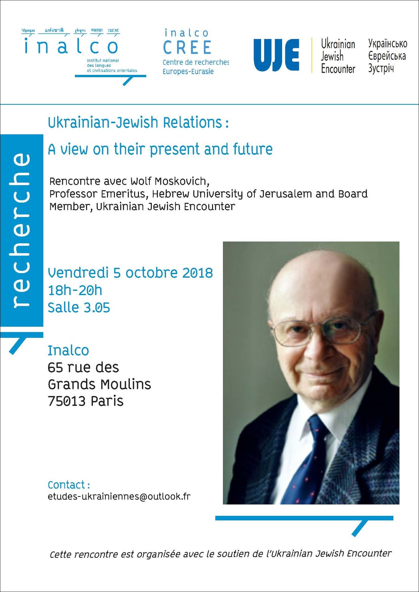 Paris: Ukrainian-Jewish Relations: A view on their present and future Event date: October 5, 2018 to October 5, 2018 Event location: Inalco, 65 rue des Grands Moulins, 75013, Paris