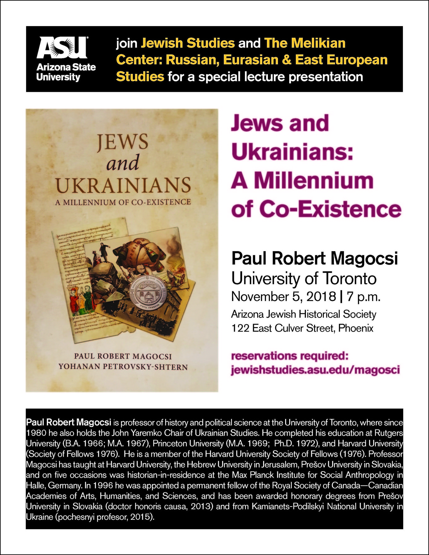 Phoenix, AZ: Jews and Ukrainians: A Millennium of Co-Existence with Paul Robert Magocsi Event date: November 5, 2018 to November 5, 2018 Event location: Arizona Jewish Historical Society 122 East Culver Street, Phoenix