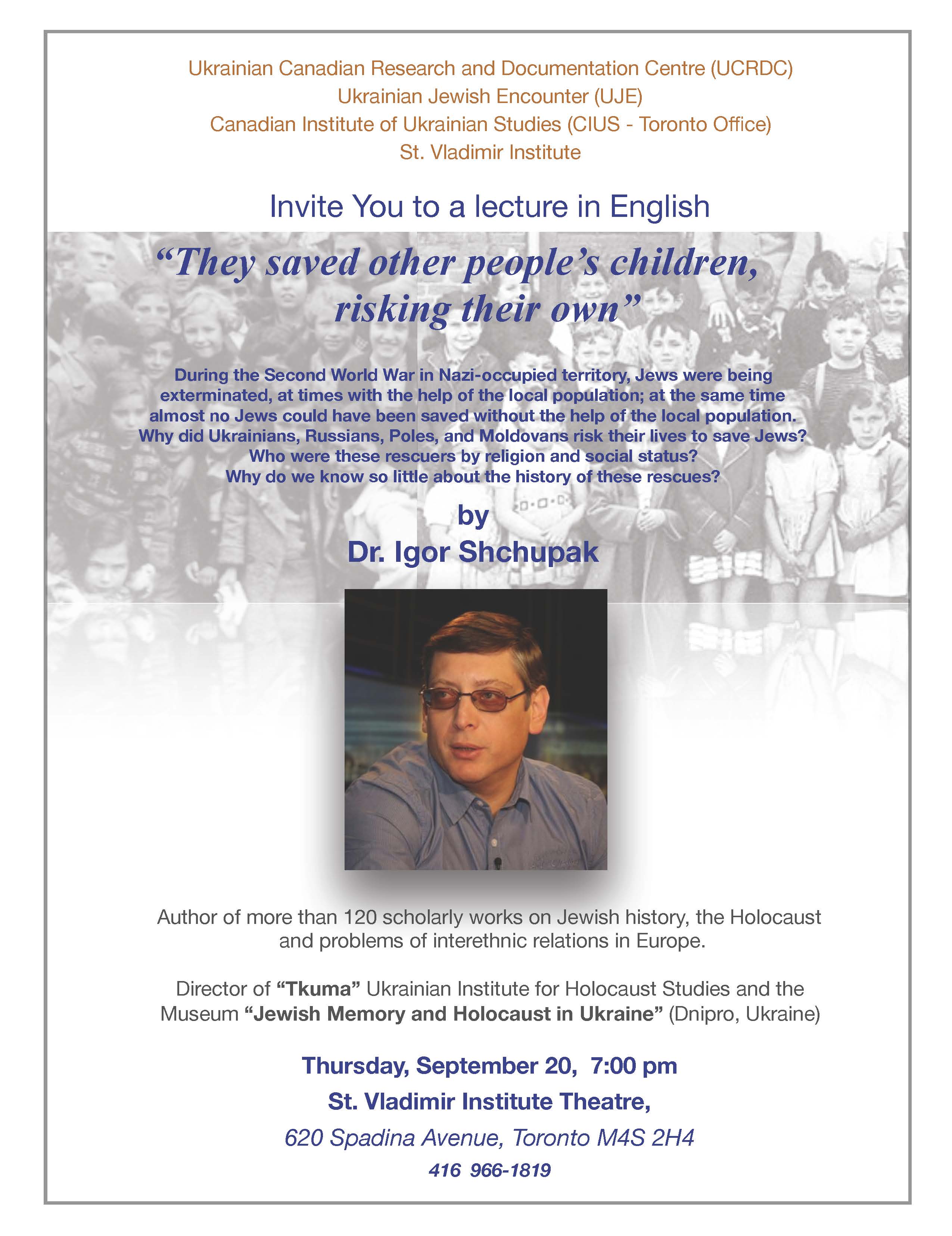 Toronto: “They saved other people’s children, risking their own” Event date: September 20, 2018 to September 20, 2018 Event location: St. Vladimir Institute Theatre, 620 Spadina Avenue, Toronto, Canada M4S 2H4
