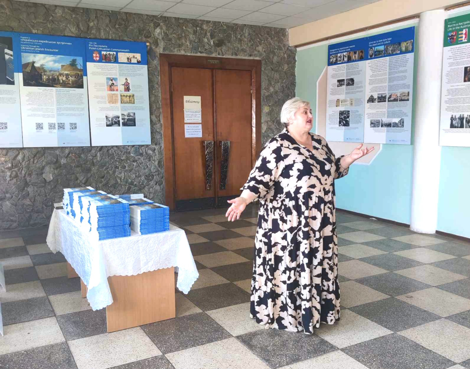 Svitlana Pereviznyk, Director of the Center for Culture, Leisure, and Sports, opened and presented the exhibition to the audience, which included representatives of the Chyhyryn Town Council, the local public library staff, and teachers from the music school and local lyceums, among others.