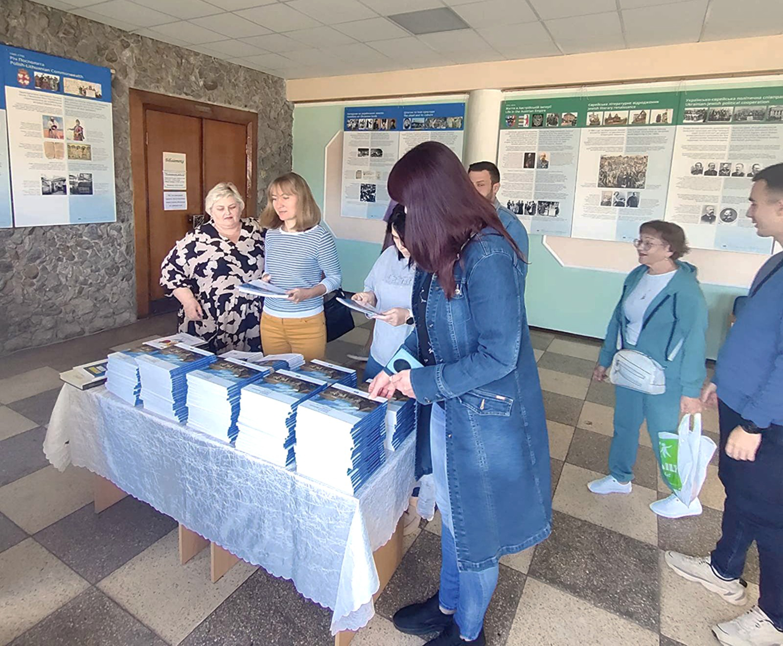 Svitlana Pereviznyk, Director of the Center for Culture, Leisure, and Sports, opened and presented the exhibition to the audience, which included representatives of the Chyhyryn Town Council, the local public library staff, and teachers from the music school and local lyceums, among others.