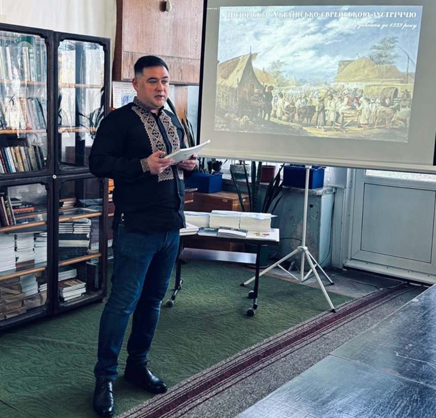 The event continued the cultural and educational initiative in Kaniv, which began in October at Kaniv's Culture and Arts Center. This time, the meeting took place in the library hall of the Shevchenko National Reserve, where a special atmosphere of learnedness and historical memory imbued the event with intimacy and emotional depth. Before the meeting, the participants listened to a selection of Ukrainian and Jewish musical works, which symbolically emphasized the common themes in the two cultures.