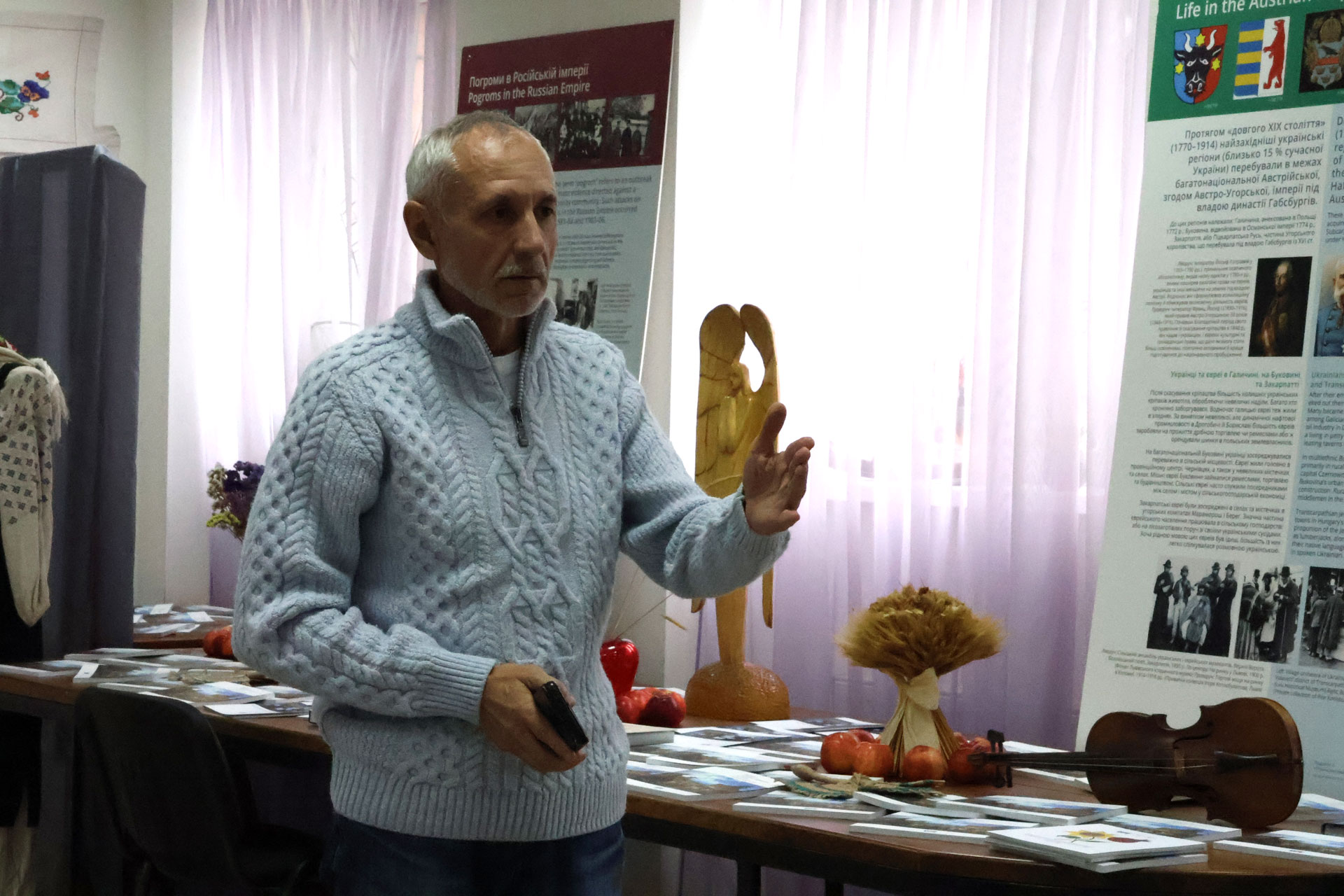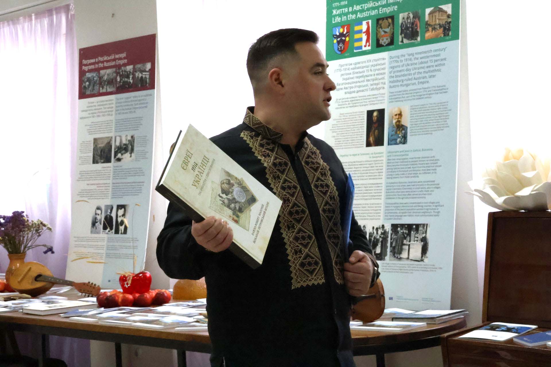 Vladyslav Hrynevych, Jr., UJE's regional manager in Ukraine, addressed the audience, emphasizing that the exhibition's purpose was to showcase the complex and diverse history of Ukrainian-Jewish relations, their cultural mutual influence, and their joint contribution to the development of Ukrainian statehood.