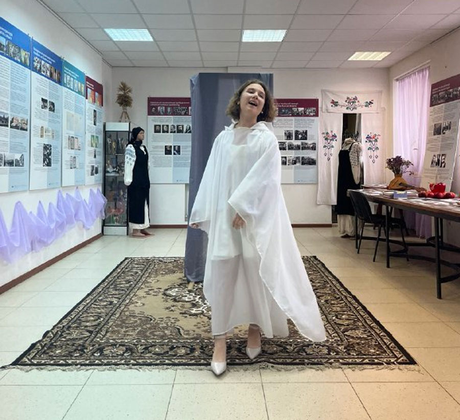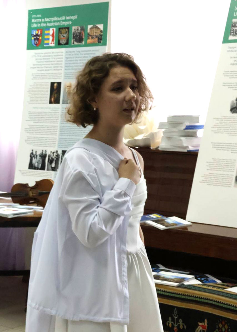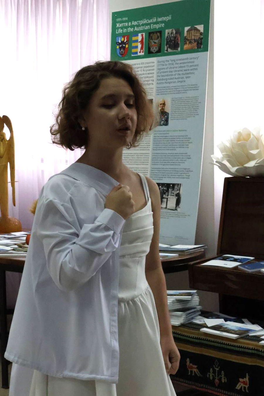 Anastasia Serhiienko, member of the Kaniv children's theater group "Phoenix," performed an excerpt from The Mirror, a play by the Ukrainian contemporary playwright Volodymyr Konovalenko. Kaniv Culture and Arts Center, 29 September 2025.Ryta Lavrentieva, Director of the Kaniv Culture and Arts Center, performed the song "Magic Violin." Kaniv Culture and Arts Center, 29 September 2025.