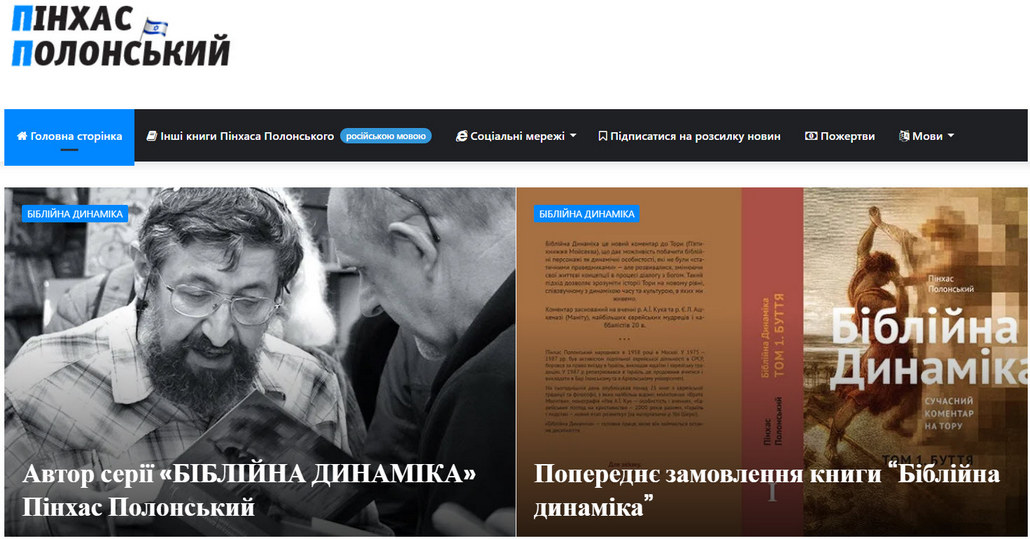 The Ukrainian translation of The Dynamics of the Bible by Pinchas Polonsky, an Israeli author and researcher of Judaism, was published in Ukraine in April 2020.