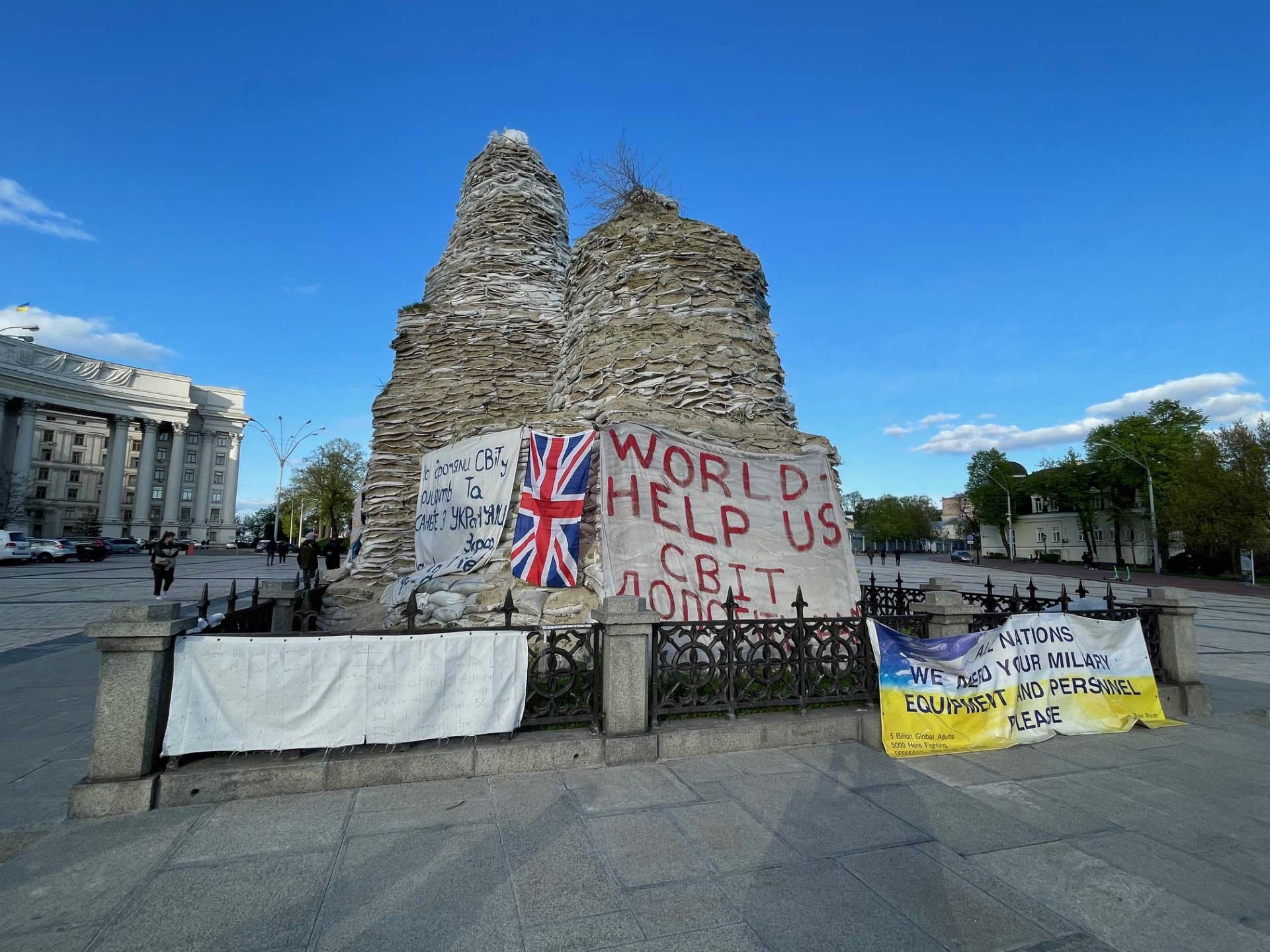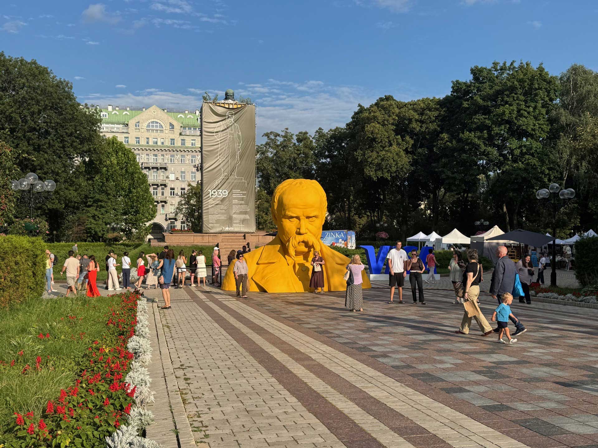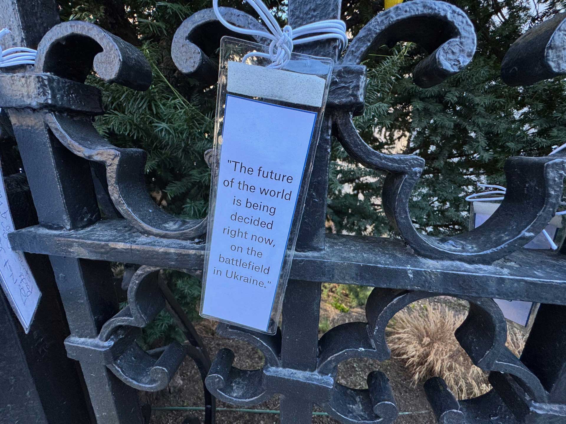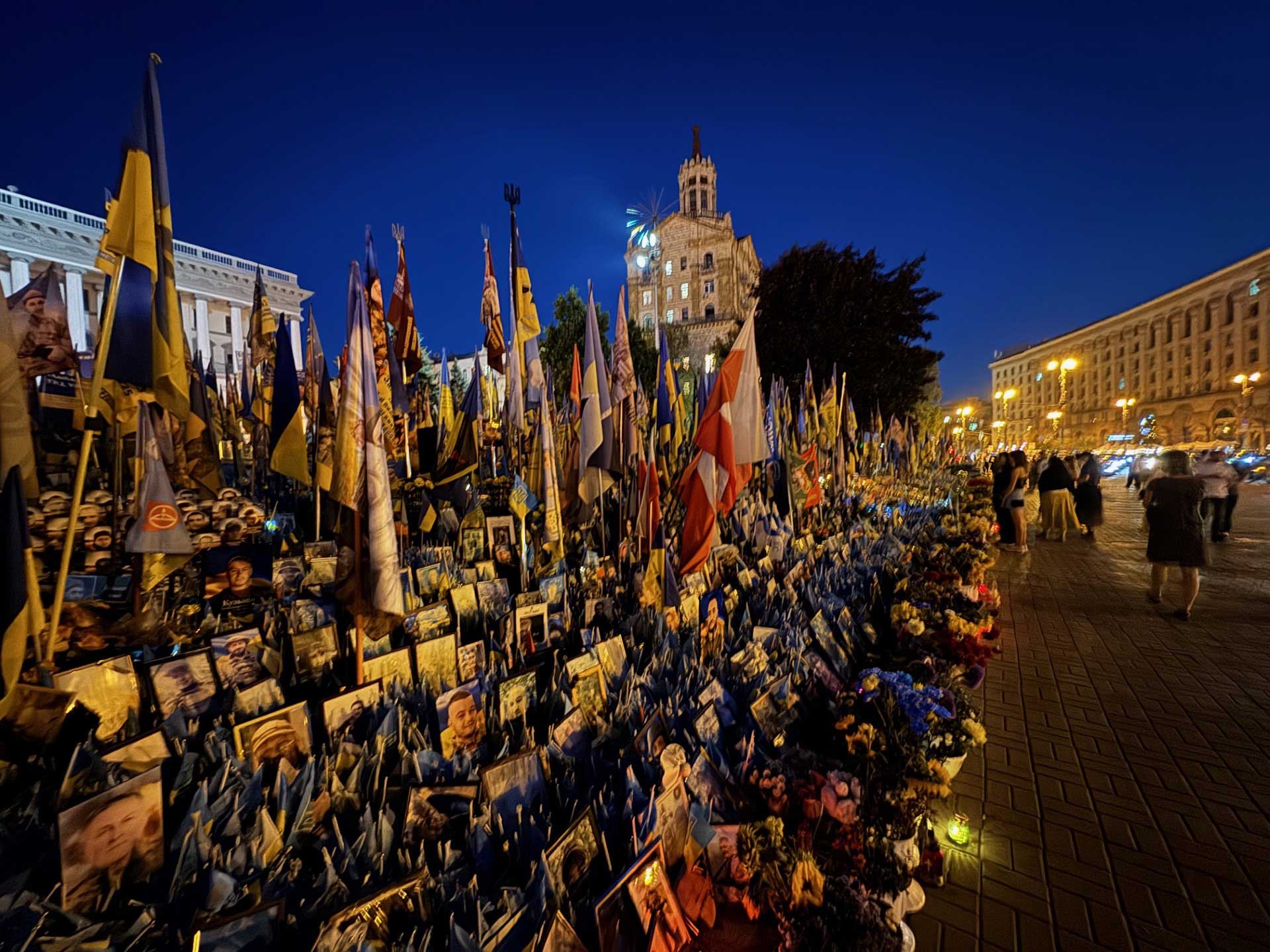 Ukrainian flag flies over buildings in Copenhagen, 23 October 2024.Seen on 22 March 2025 outside New York's Ukrainian Institute of America: "The future of the world is being decided right now on the battlefield in Ukraine." This non-profit organization is "dedicated to promoting the art, music, and literature of Ukraine and the Ukrainian diaspora. It serves both as a center for the Ukrainian-American community and as America's "Window on Ukraine," hosting art exhibits, concerts, film screenings, poetry readings, literary evenings, children's programs, lectures, symposia, and full educational programs, all open to the public."A tribute to Ukrainian writer and war crimes researcher Victoria Amelina on 1 June 2025 at the International Book Arsenal festival in Kyiv. Amelina was fatally injured on 27 June 2023 during a Russian attack on Kramatorsk when an Iskander missile hit the pizzeria where she was with reporters and politicians from Colombia. She died at the age of 37 on 1 July 2023, leaving behind a son and husband.A memorial to Ihor Voyevodin, a student at Taras Shevchenko National University of Kyiv, who died fighting for an independent Ukraine near the eastern city of Kreminna, Luhansk Oblast, as seen on 4 June 2025. The gardens are adjacent to the university.As seen in June 2025, the name of Russian composer Pyotr Tchaikovsky is crossed out on a memorial plaque placed on the home of famed Ukrainian composer Mykola Lysenko, where he lived in Kyiv between 1888 and 1894. The two men met at Lysenko's home in 1896. Ukraine has been taking steps to remove the Russian composer's name from public and cultural institutions as part of a "decolonization" push, including dropping his name from Kyiv's top conservatory.A fragment of a sculpture as seen on 8 June 2025, dedicated to foreign defenders of Ukraine on Kyiv's Mykhailivska Square. The exhibition took place at Ukraine's war museum and was organized by the R.T. Weatherman Foundation, a US pro-democracy non-profit operating in Ukraine since 2022.The Black Cloud, an "artwork that visualizes the threats we choose not to see — blindly hoping that someone else will preserve the stability of the world around us," as seen on Kyiv's St. Sophia Square on 8 June 2025. The cloud, as a warning, later traveled to the United States to the Burning Man festival, where it was destroyed by a storm and reemerged as a new artwork, "No Fate".From the exhibition "…beyond the borders of our native land" on 14 June 2025 at Kyiv's War Museum. The exhibition documents Ukraine's defensive operation in Russia's Kursk region as well as Ukrainian settlements that developed in the Kursk, Belgorod, and Voronezh regions since the second half of the 17th century. The sign is in Russian, with Ukraine pointing left and Russia pointing right.Illustrations on a building in Kyiv in June 2025. The mural reads "Will live, won't die".A temporary statue of Taras Shevchenko on 10 August 2025 in the park named after him opposite Kyiv University. The permanent statue of Ukraine's poet laureate was wrapped in protective wear, much like many statues in the city. The statue was unveiled on 6 March 1939 on the site of the former monument to Russian Tsar Nicholas I and dedicated to the 125th anniversary of Shevchenko's birth. The university was named in the poet's honor on the same occasion.A window in Kyiv's main shopping center, Tsum, is decorated with artwork by famed Ukrainian artist Alla Horska on 20 August 2025. Horska was also a Soviet dissident who was associated with the Ukrainian underground and Sixtiers movements during the 1960s. Sixtiers rejected the principles of social realism, embraced creativity, and refused to allow their art to serve the interests of the Soviet authorities. Soviet special services killed Horska at the age of 41 in circumstances not fully clarified.The number of flags honoring Ukrainian servicepeople who have died in Russia's genocidal war against Ukraine grows, as evidenced on 29 August 2025.