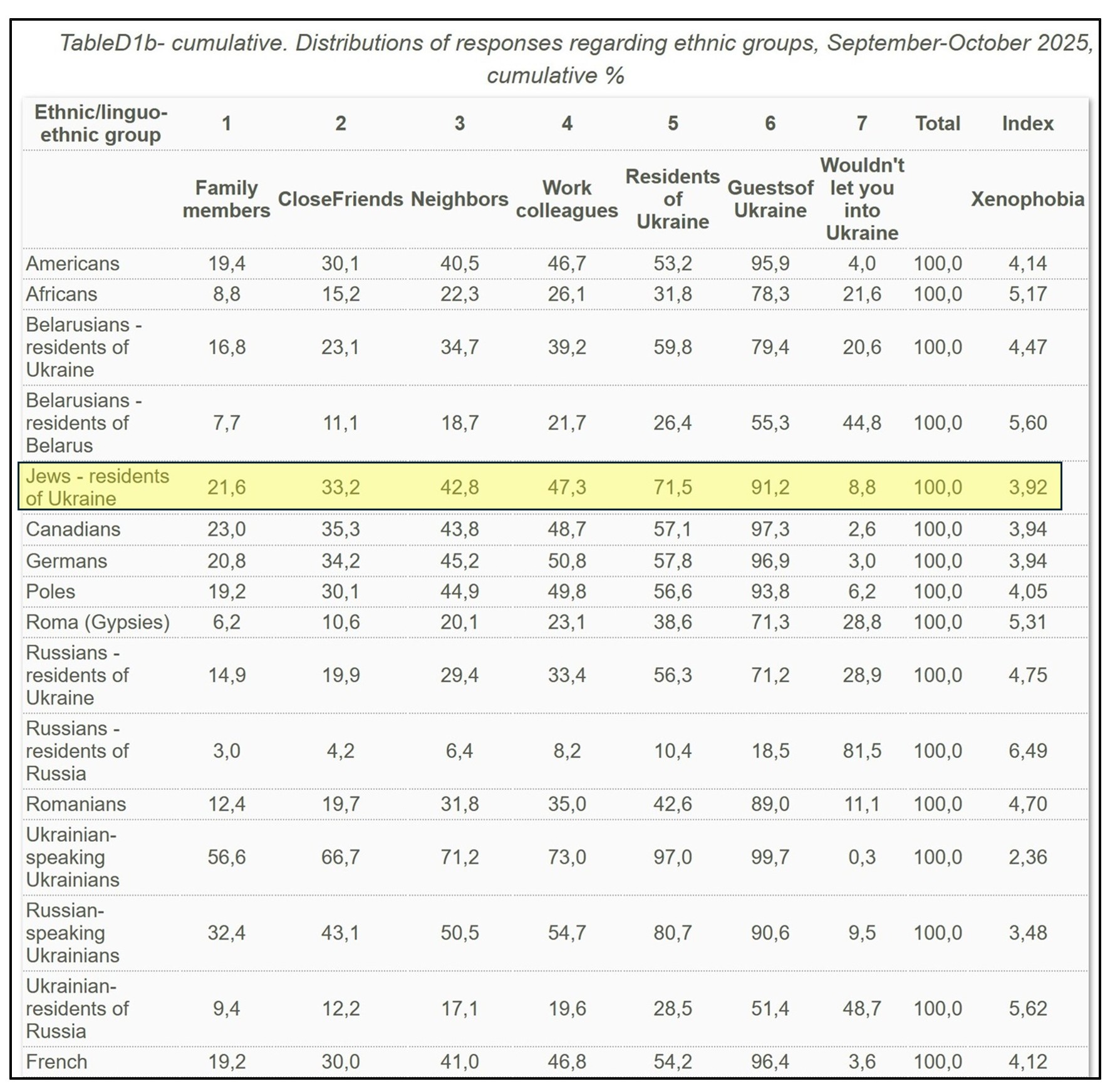 Thus, the Jews of Ukraine moved from sixth to third place among other ethnic groups in terms of their acceptance in Ukrainian society.