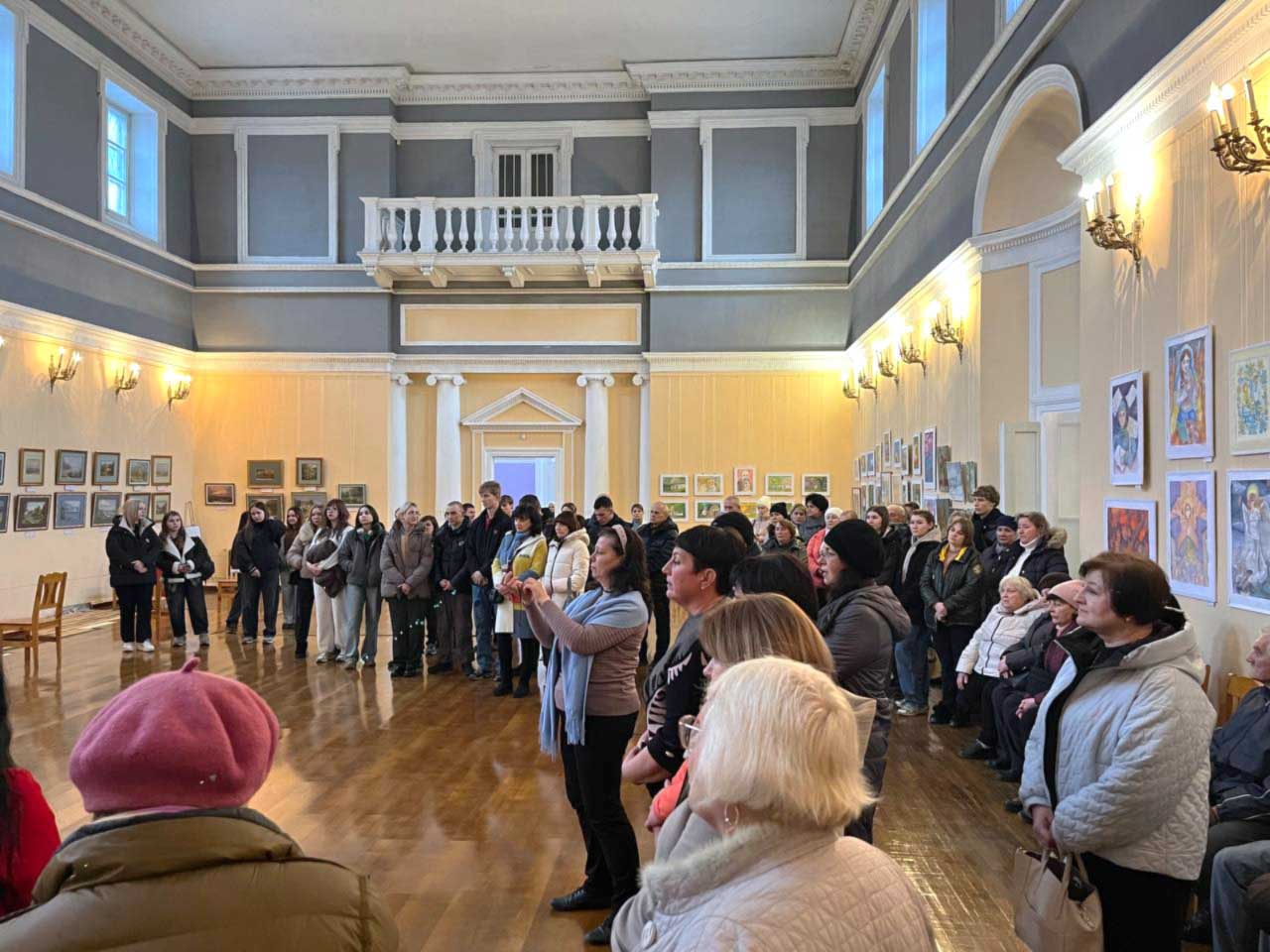 The artistic highlight of the opening ceremony was the performance of Valentyna Hryniuk, a talented composer, singer, and leader of the Barvy Korsunia Ukrainian singing studio at the Center for Children and Youth Art. She sang the Ukrainian folk song "Chornobryvtsi," creating a warm emotional atmosphere that highlighted the spiritual connection between art and historical memory.