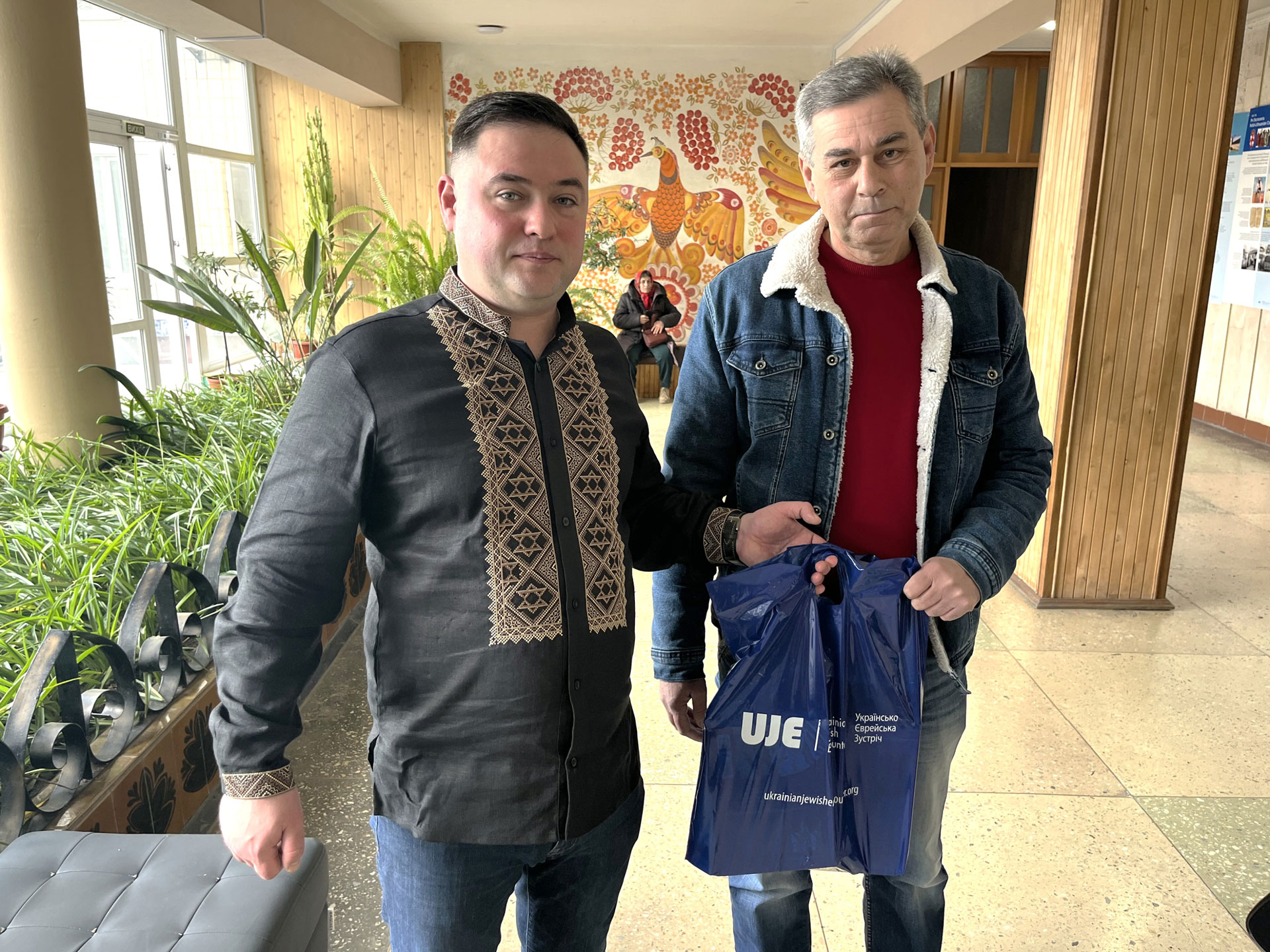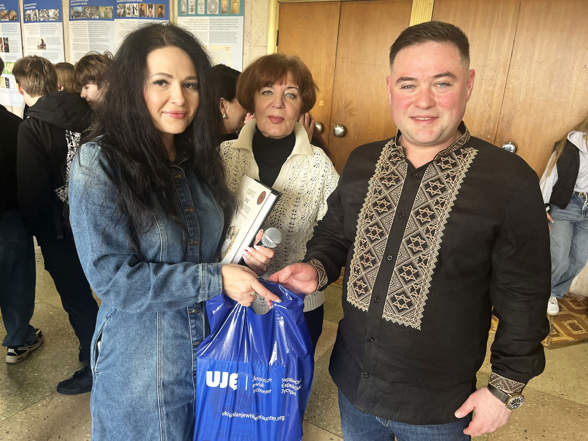 Vladyslav Hrynevych, Jr., UJE's regional manager in Ukraine, presents Inna Shypilova, Head of the Education Department of the Vasylkiv Town Council, with a set of books published with UJE's support. 20 March 2026.Maria Kulivnyk, Head of the Department for Culture, Tourism, and Cultural Heritage Protection of the Vasylkiv Town Council. 20 March 2026.Vladyslav Hrynevych, Jr., UJE's regional manager in Ukraine, presents Viacheslav Zipman, Head of Vasylkiv's Jewish community, with a set of books published with UJE's support. 20 March 2026.