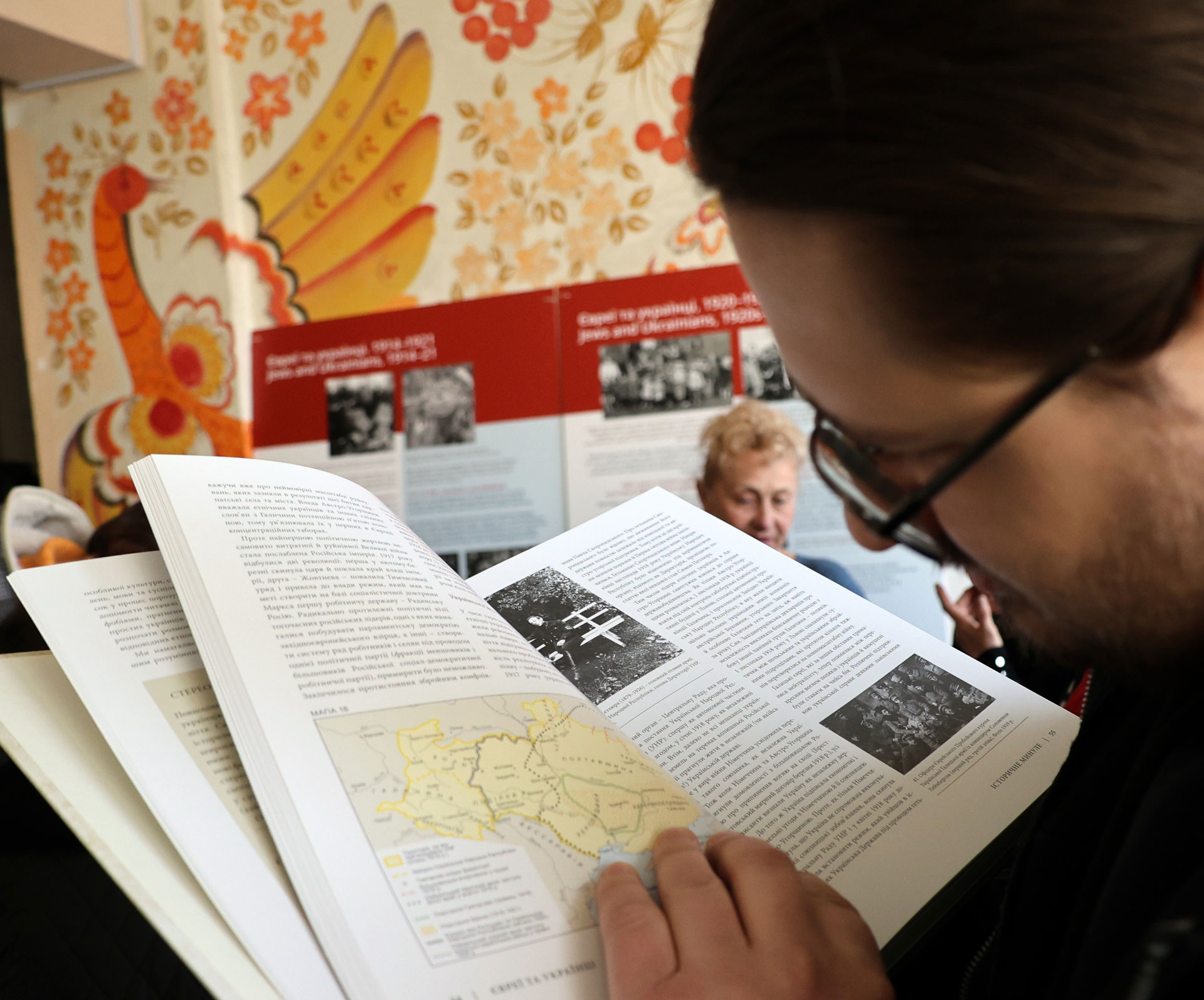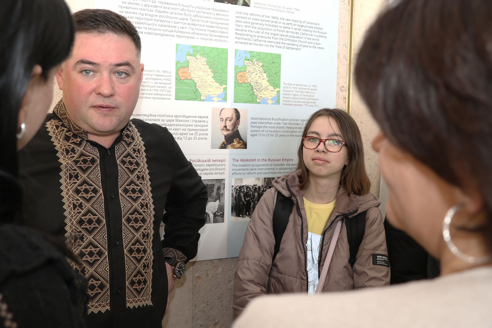 After the official opening ceremony, visitors were able to become more familiar with the exhibits. They carefully examined the exposition, discussed individual historical plots, and shared their thoughts on the complex but important history of Ukrainian-Jewish relations. Each visitor traditionally received a copy of the lavishly illustrated, insightful catalog A Journey Through the Ukrainian-Jewish Encounter: From Antiquity to 1914. This book contains a rich selection of historical materials and can be a source for further exploration of Ukrainian-Jewish relations.