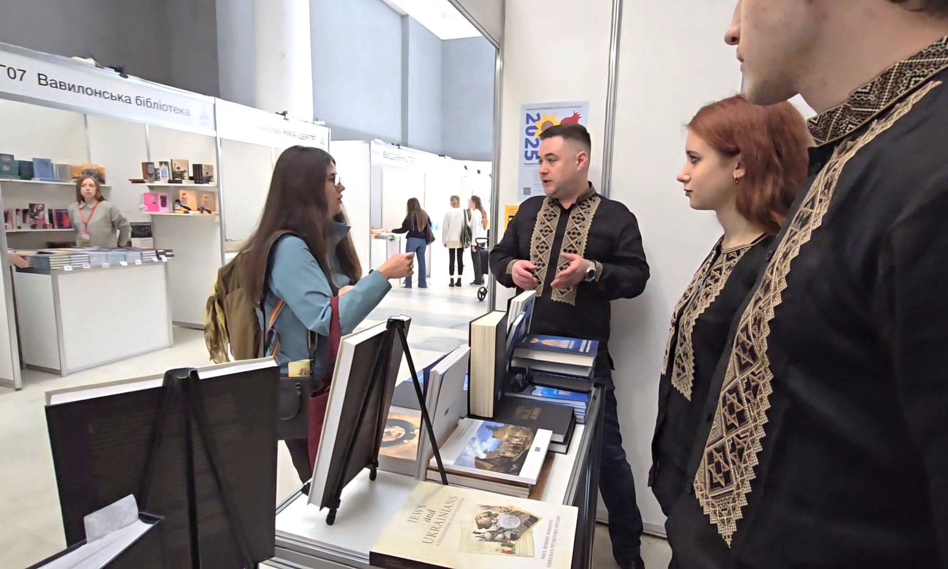 As usual, UJE presented its books in pavilion No. 1. Its information and book display stand informed visitors about the organization's mission, activities, and major projects: the Ukrainian Jewish Encounter Timeline, Babyn Yar commemoration in 2016, the exhibition project "A Journey Through the Ukrainian-Jewish Encounter: From Antiquity to 1939," the Encounter Literary Prize, the All-Ukrainian Student Drawing Competition "Ukrainian-Jewish Encounter: Our Stories Are Incomplete Without Each Other," and others.