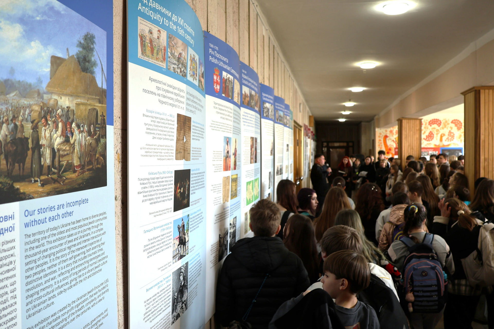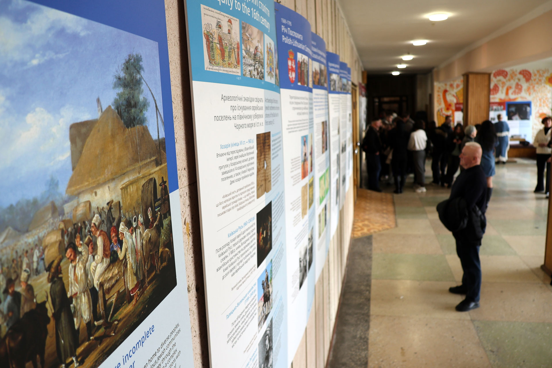 Після закінчення офіційної частини заходу гості мали змогу ближче ознайомитися з матеріалами виставки. Відвідувачі уважно розглядали експозицію, обговорювали окремі історичні сюжети та ділилися власними роздумами про складну, але важливу історію українсько-єврейських взаємин. Кожен відвідувач традиційно отримав у подарунок яскравий та змістовний каталог «Подорож із «Українсько-Єврейською Зустріччю»: від давнини до 1914 року» — книжкове видання, яке містить багато історичних матеріалів і може слугувати джерелом для подальшого знайомства з темою українсько-єврейських взаємин.