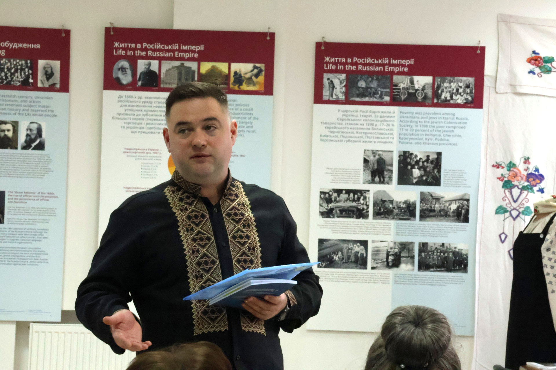 Під час урочистого відкриття виставки «Подорож з «Українсько-Єврейською Зустріччю»: Від давнини до 1939 року» у Каневі. Канівський Центр Культури і Мистецтв, 29 вересня 2025 р.