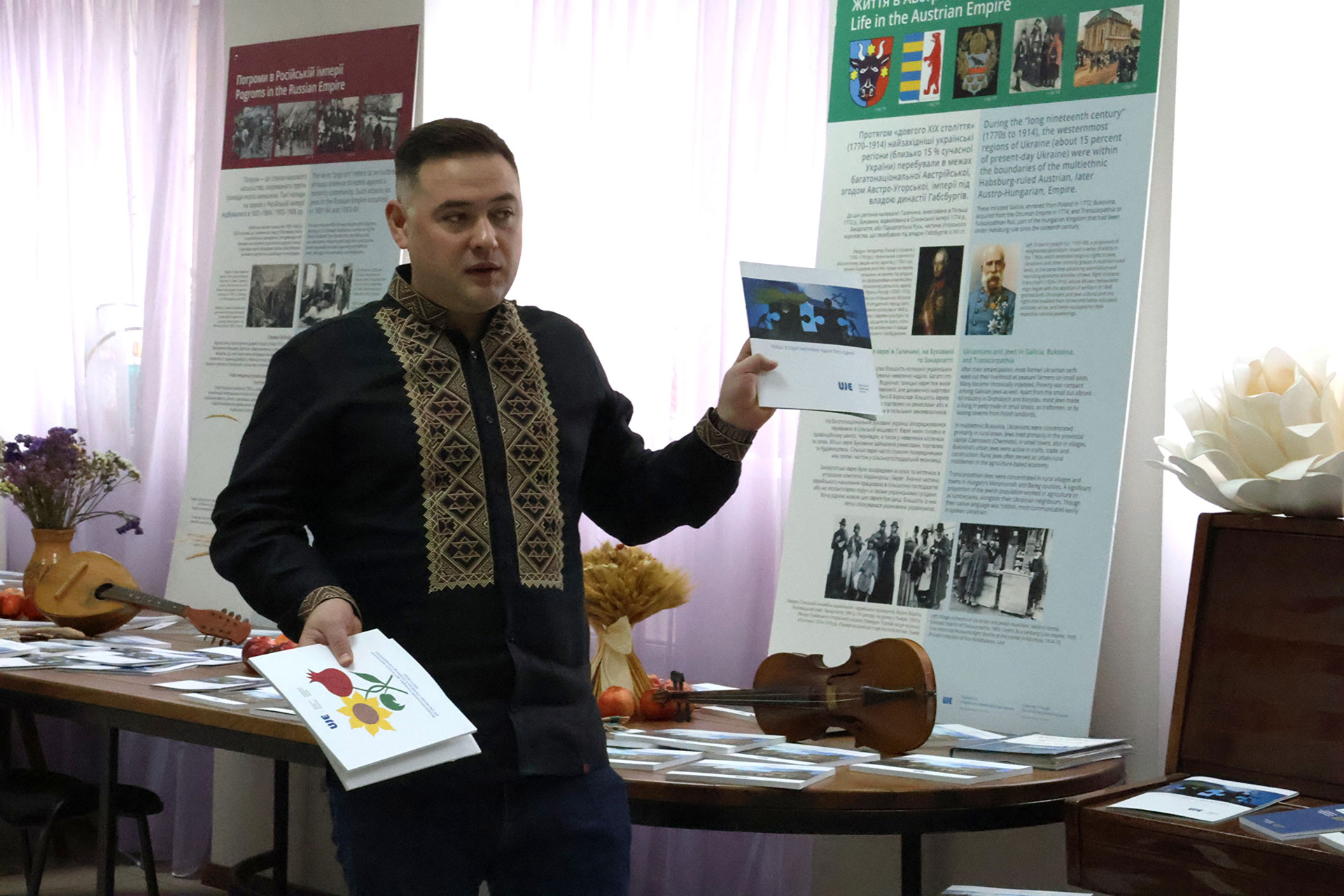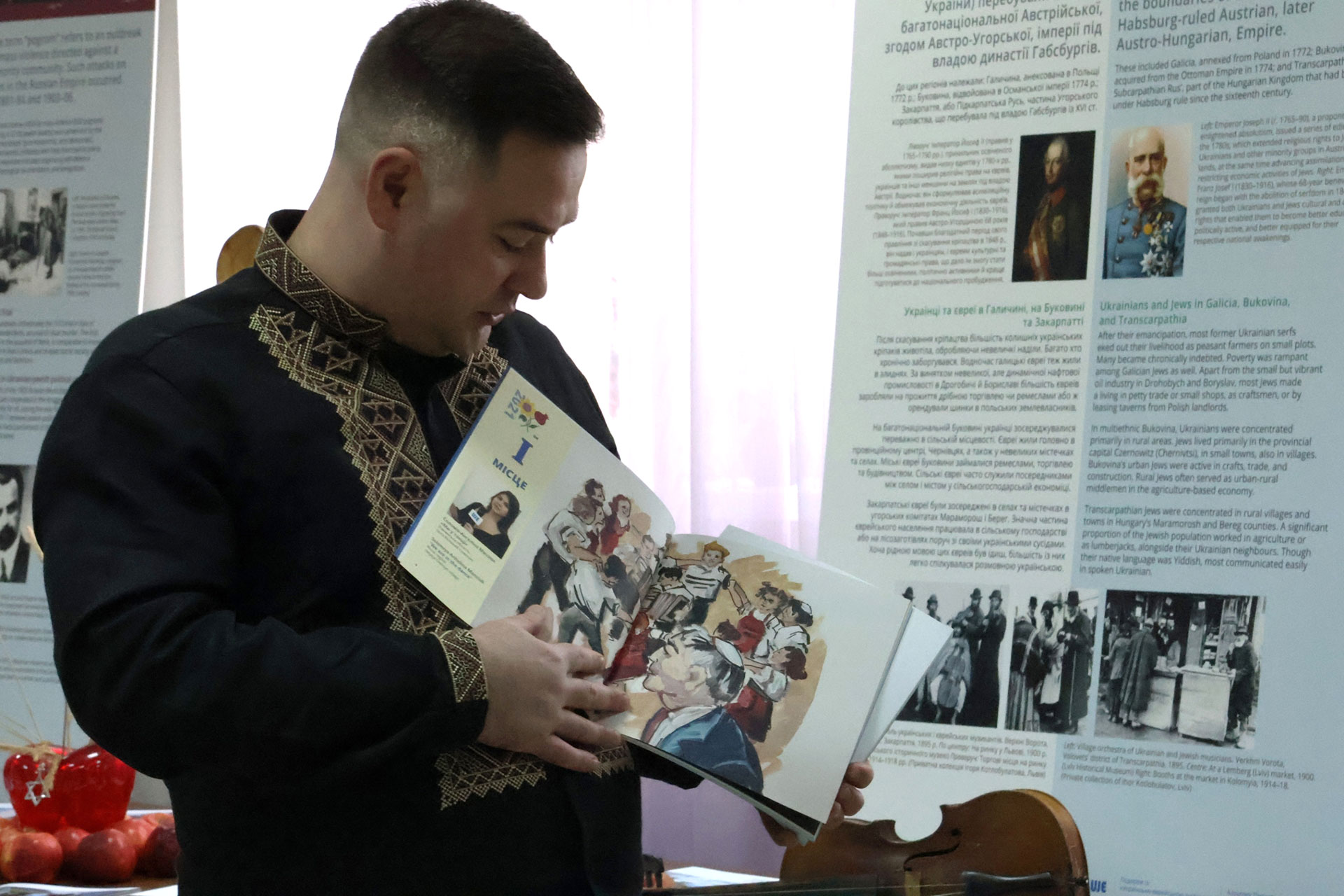 Зі вступним словом до присутніх звернувся Владислав Гриневич, регіональний менеджер UJE в Україні, який наголосив, що мета виставки — показати складну та різноманітну історію українсько-єврейських відносин, їхній культурний взаємовплив та спільний внесок у розвиток української державності.